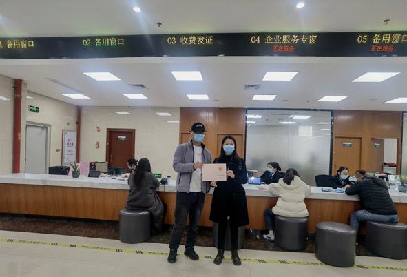 图为该局工作人员向市民赖先生颁发证明。