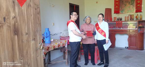 图为该局党员先锋队队员为一位高龄群众送证上门。