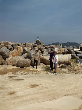 图为8月5日,该局工作人员到沈海高速扩容项目内丁段,巡查剩余砂石处置情况。