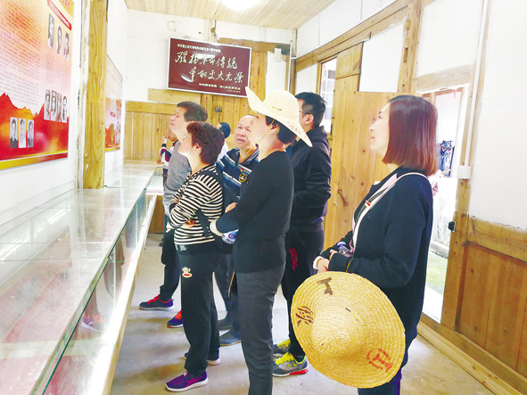南平市库区移民局党员在菖上村观看革命先烈的英雄事迹。 ■ 孙 靖