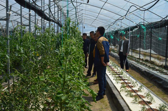 图为近日,仙游县国土资源局工作人员到利农农业技术(莆田)有限公司位于度尾镇度峰社区的基地了解经过土地整理的耕地后期管护及流转后的生产经营情况。■ 本报记者 郑与国 特约记者 张步雄