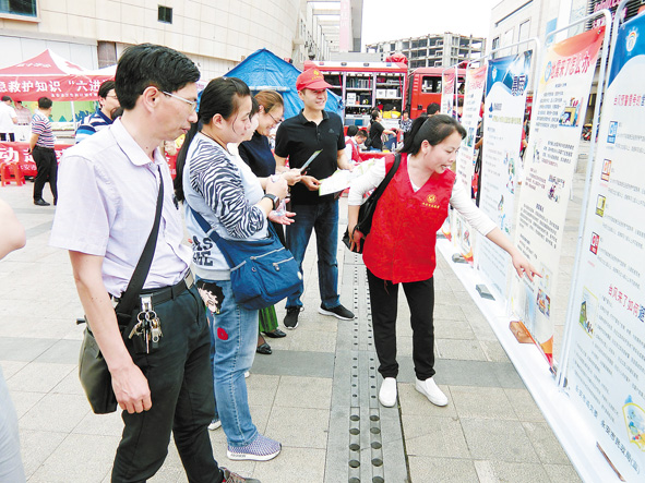 59,永安国土资源局在市中心设立展板,宣传防灾减灾知识。■ 杨家璋 陈 静