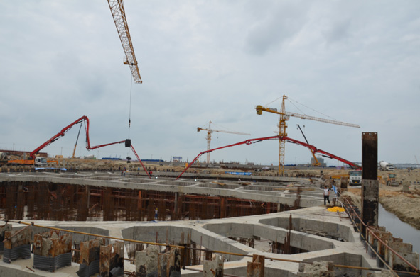图为5月10日,福清市利用存量土地新引进的新福兴新能源玻璃产业园一期项目正在加紧建设中。