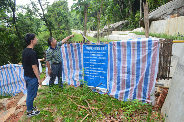 图为5月11日,莆田市国土资源局地灾防治工作人员深入城厢区石室岩检查地灾治理工程施工建设情况。■ 特约记者 张步雄