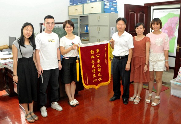 6月5日,龙岩市五交化商住楼业主代表把三面锦旗送到龙岩市国土资源局、龙岩市不动产登记中心和龙岩市国土资源局新罗土地分局,以此感谢他们妥善解决了困扰该商住楼42户住户近20年的不动产登记历史遗留问题。