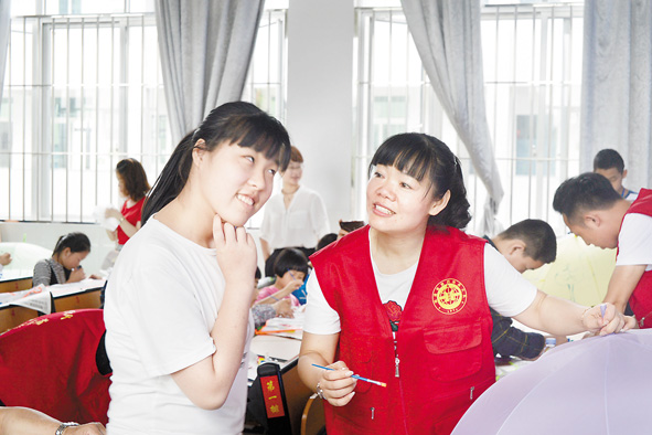6月1日,省第四地质大队志愿者来到宁德市特殊教育学校,为该校学生带去了书包、书籍、篮球等文体用品,并和学生们一同参加彩绘雨伞、趣味体育大比拼等互动活动,现场充满和谐温馨的气氛。 ■ 林晓兰