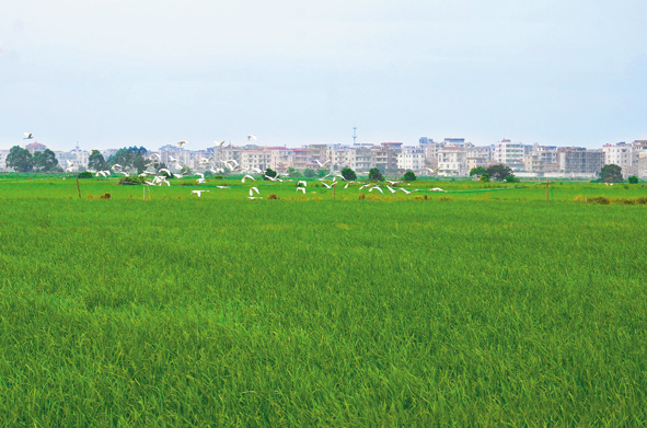 图为笔者近日在福清市江镜镇高标准农田项目区看到,良好的生态环境已成为白鹭栖息的天堂。