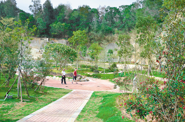 图为该市永宁镇治理废弃石窟修建的宝盖山风景区“休闲驿站”公园。■ 齐培松 涂晓扬