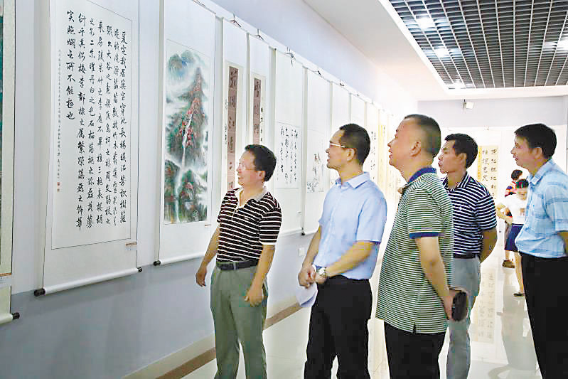 宁化县国土资源局举办的全国土地日书画展吸引许多书画受好者观展。■ 伊旭平