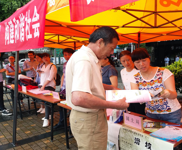 614,南平市国土资源局延平分局在南平大剧院文化广场开展“安全生产月”宣传咨询活动。