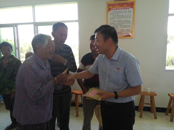 图为该局工作人员向村里的结对帮扶困难群众送上慰问金。■ 雷文雯