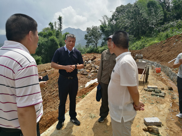 7月12日,福鼎市国土资源局组织人员对各乡镇受灾情况进行核查,主要查看受灾比较严重的沙埕镇、白琳镇,并实地查看正在进行的工程治理点受灾情况。图为福鼎市国土资源局罗斌副局长与福建省第四地质大队专家在白琳镇番山庵永福寺地灾治理工程点了解情况。 ■ 林成密