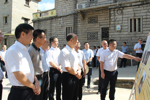 郑建闽一行在晋江市梧林社区调研古村落保护项目建设情况。■ 庄建顺