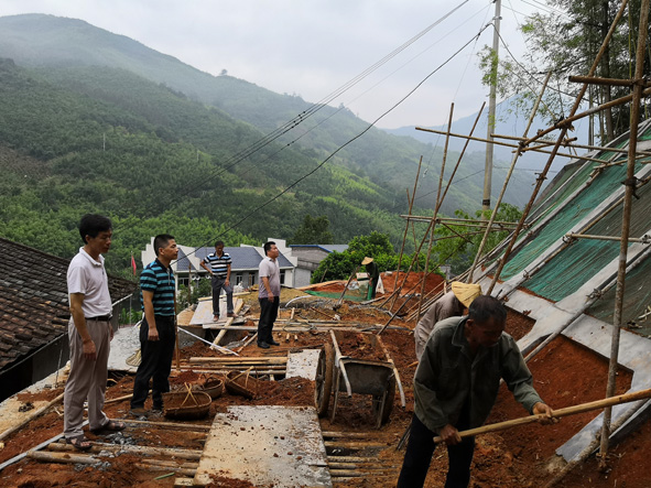 图为近日,已完成工程量90%以上的桔林乡宝湖村曹本根等房后崩塌工程治理点仍在紧张施工当中。