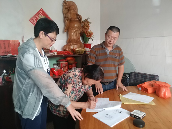 图为近日,该中心两名工作人员到宁化县翠江镇朝阳新村,上门为因年迈行动不便的王盛水老人办理国有建设用地和房屋所有权首次登记。 ■ 罗程红