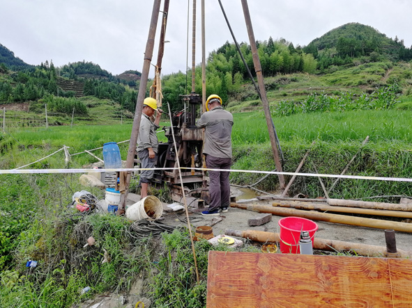 近日,省第四地质大队在寿宁县南阳镇含溪村钻探出一口日出水量150吨的供水井。随着饮用水入户,该村近两百户村民的用水难问题将得到解决。据介绍,该村地处大山深处,村内无大型河流分布,村民仅靠村头山涧截流取水,能够喝上安心饮用水成了含溪村近两百户村民的奢望。去年11月,省地质矿产勘查开发局将寿宁县含溪村地下水资源勘查项目列入2018年帮扶寿宁县的工作计划,并将项目交由该局所属的省第四地质大队落实。图为供水井钻探施工现场。■ 林晓兰 贺粤利